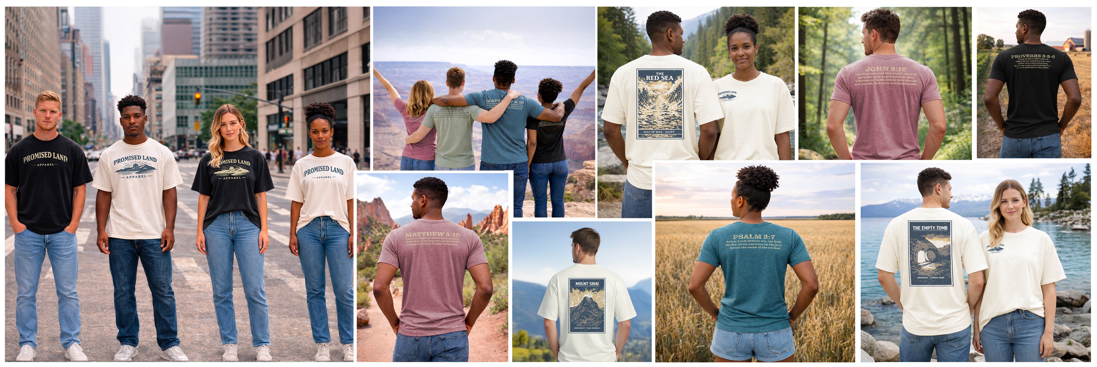 Promised Land Apparel exists to create clothing that points back to the story of our one true God. Wilderness, waiting, promise, sacrifice, and resurrection. Built for everyday wear.